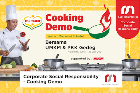 Gedeg - Mojokerto 28 Juni 2024. PT Sari Mas Permai dengan bangga telah melaksanakan acara CSR Demo Cooking yang berlangsung pada tanggal 28 Juni 2024 di Balai Desa Gedeg, Mojokerto. Acara ini merupakan agenda rutin bulanan yang dilakukan bersama Mamaco Minyak Kelapa dengan tujuan untuk meningkatkan keterampilan memasak warga desa serta memperkenalkan potensi usaha kuliner lokal.